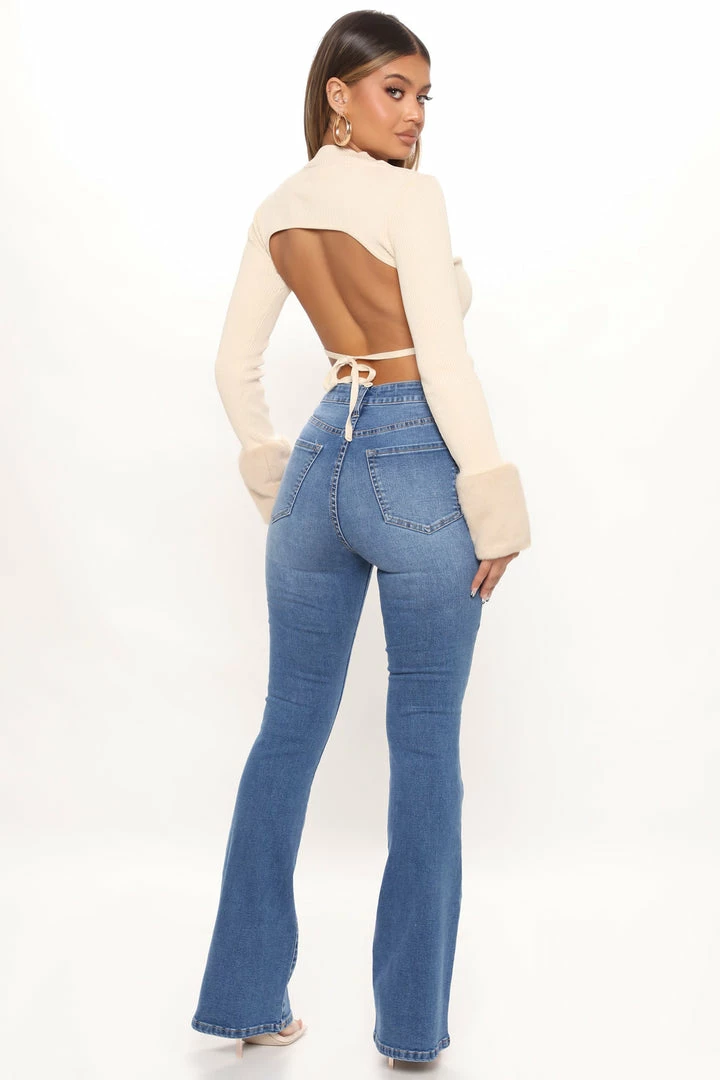 Outlet 🔔 Fashion Nova Affair Of The Flare Stretch 👖 Jeans – Medium Blue Wash 😉