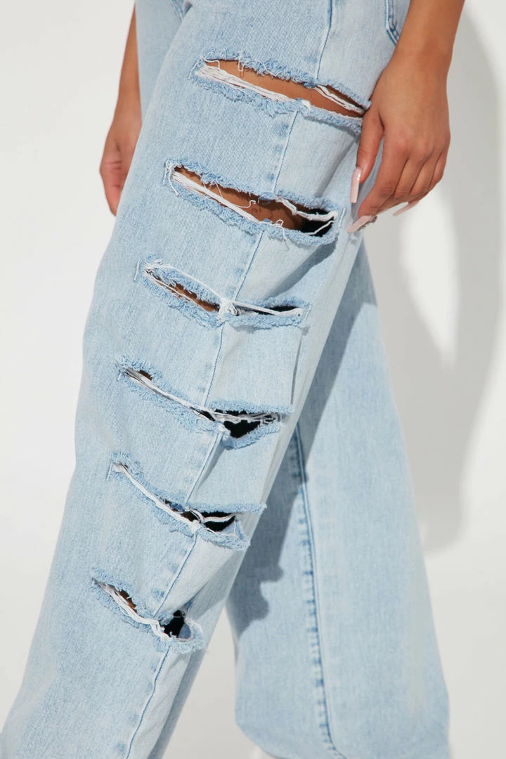Promo π Fashion Nova Baggy π Jeans City Streets Ripped Baggy Wide Leg Jean – Light Blue Wash β