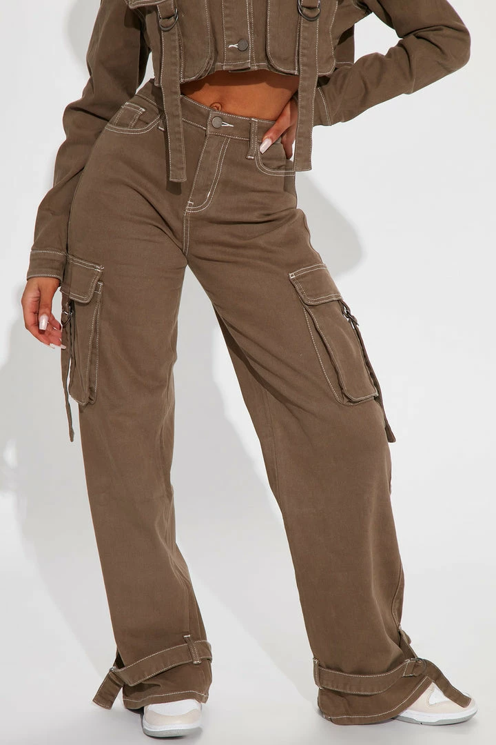 Outlet 👏 Fashion Nova Baggy 👖 Jeans Love Hurts Ankle Strap Cargo 👖 Jeans – Olive ✨