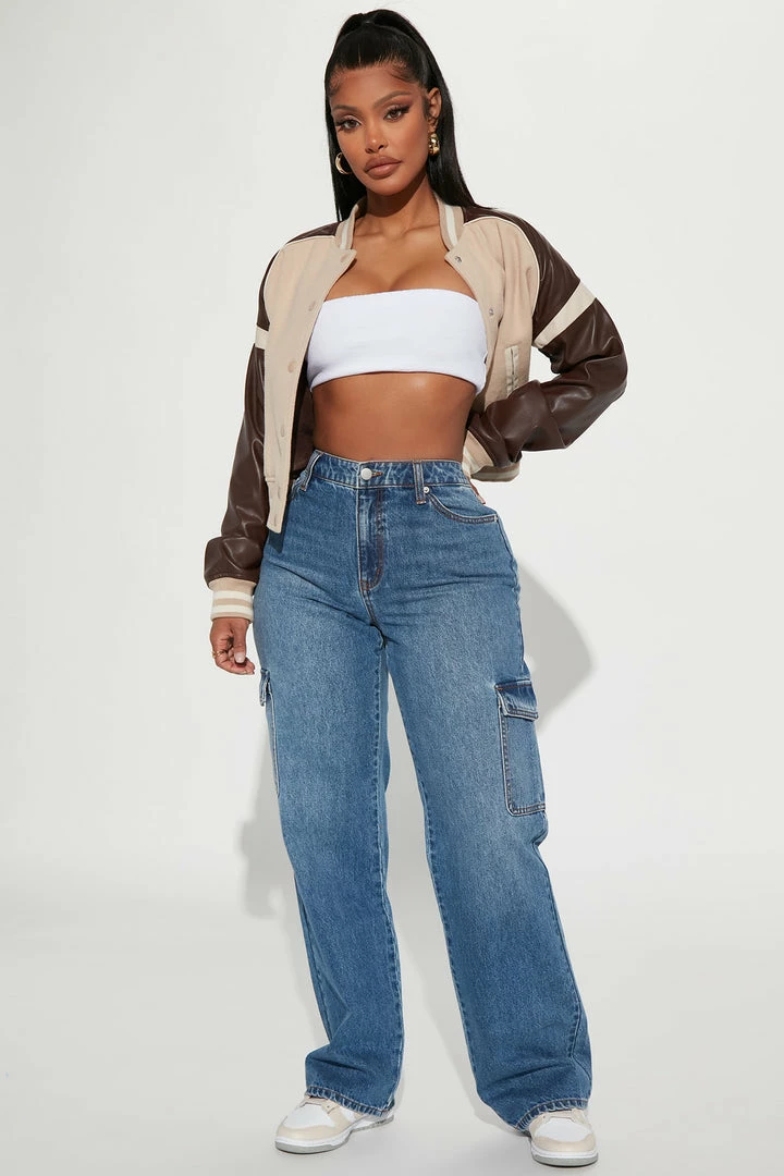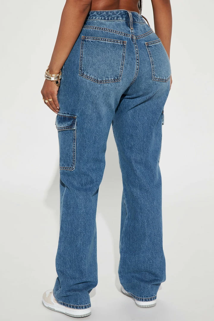 Best Sale ๐ Fashion Nova Baggy ๐ Jeans Won’t Stop Now Cargo Jean – Medium Wash ๐