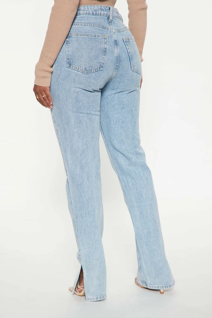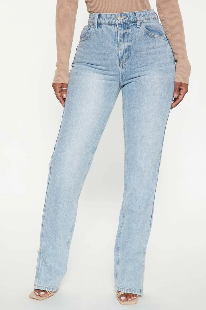 Discount ๐ฅฐ Fashion Nova Chase The Dream Slit Straight Leg ๐ Jeans – Light Blue Wash ๐
