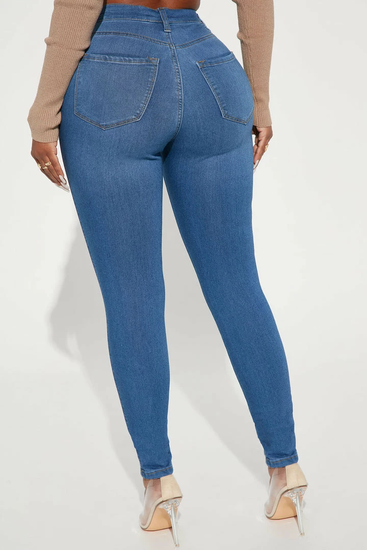 Best Sale ⌛ Fashion Nova Classic Button Up Skinny 👖 Jeans – Medium Blue Wash ✨