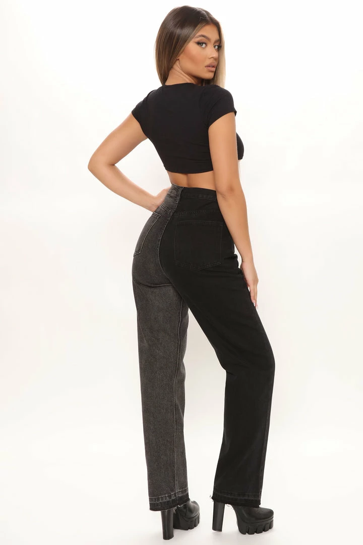 Cheapest ๐ Fashion Nova Crossover Two Tone Straight Leg ๐ Jeans – Black ๐ฅ