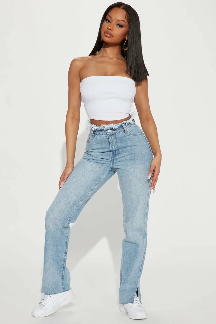 Best reviews of ๐ฅฐ Fashion Nova Cut Off Waistband Straight Leg ๐ Jeans – Medium Wash ๐