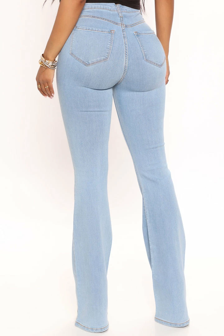 Our sexiest flare jean is offered in a range of washes in a high stretch, super soft fabric that hugs every curve. Fitted in the hips and thighs while flaring at the knee, these jeans elongate the legs and are perfect with a heel. Now offered in a range of washes, colors, and inseams.