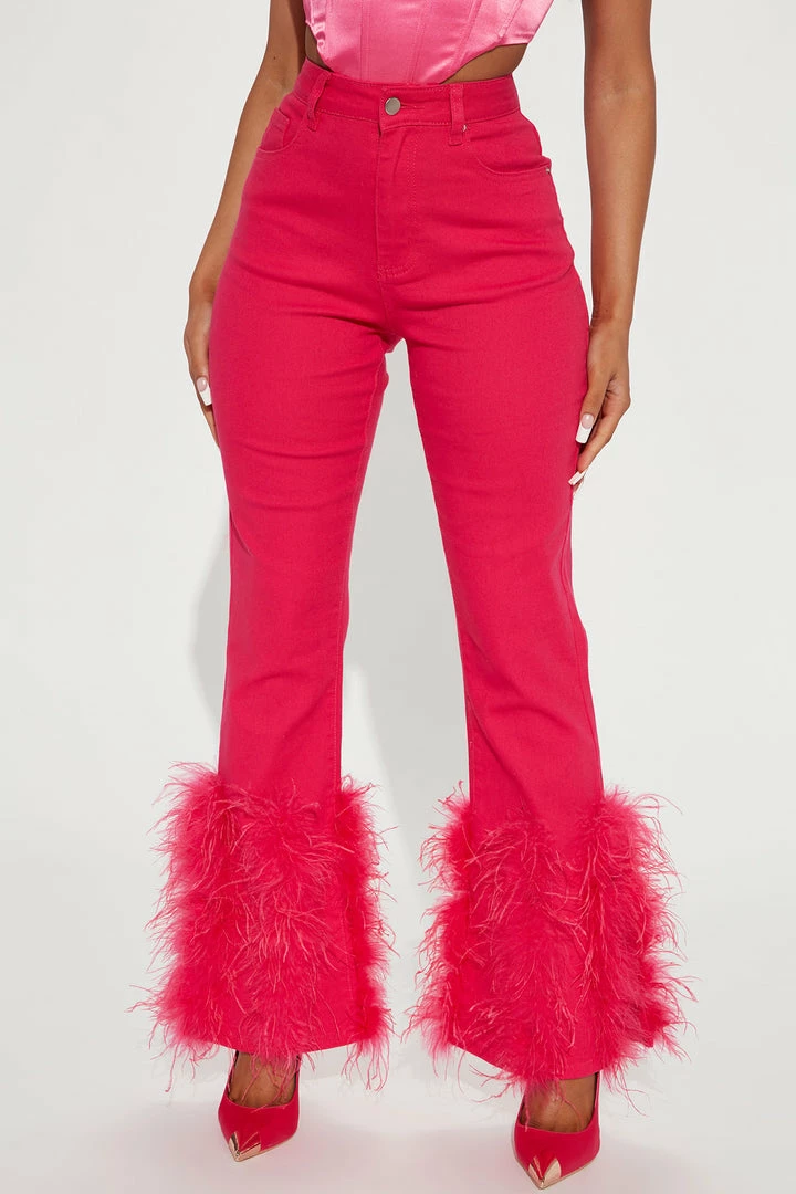 Best Sale π Fashion Nova Fancy Feathers Slit Hem Straight Leg π Jeans – Pink π