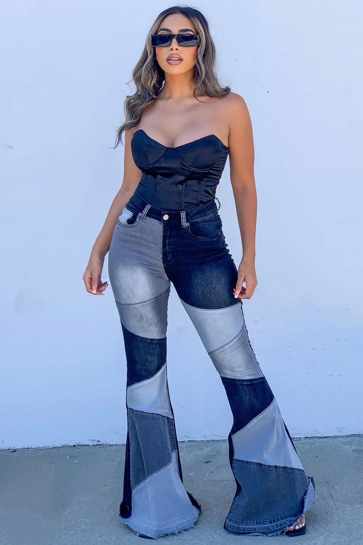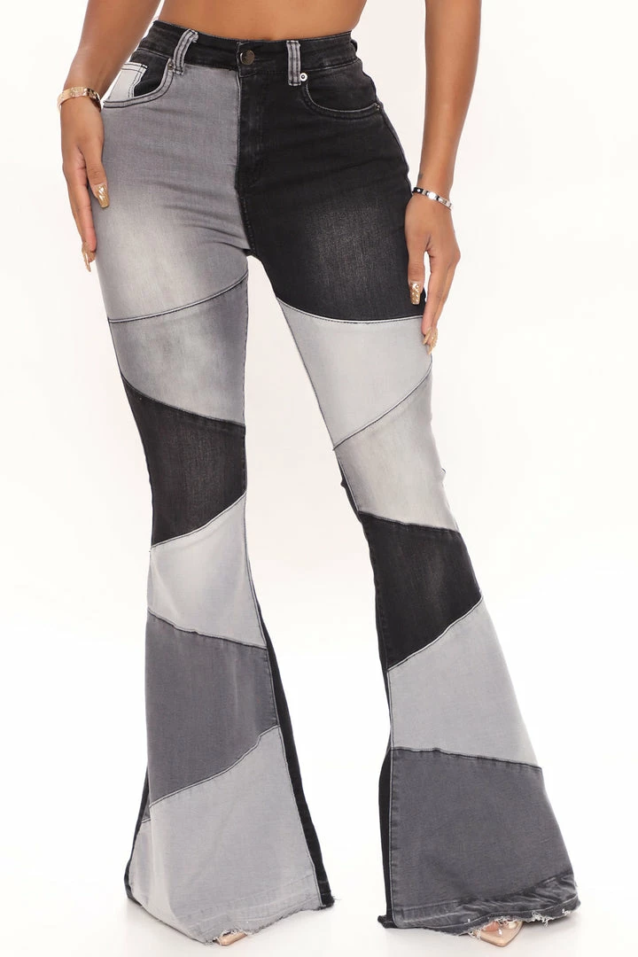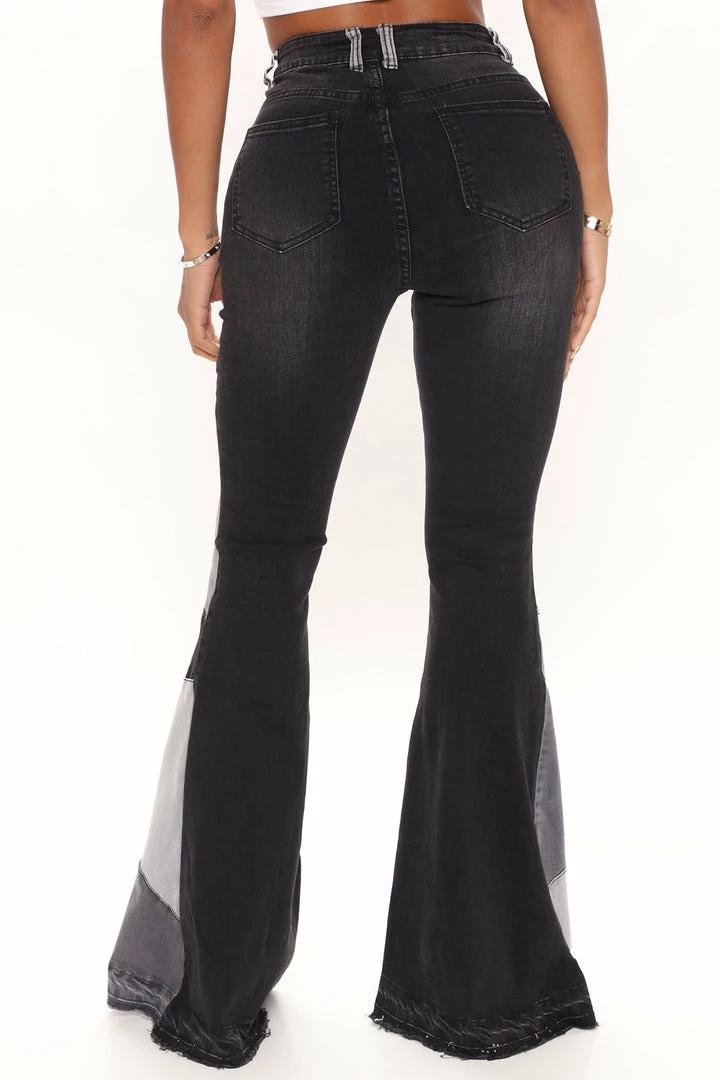 Wholesale 😍 Fashion Nova Fixed You Up Patchwork Flare 👖 Jeans – Black/combo ❤️