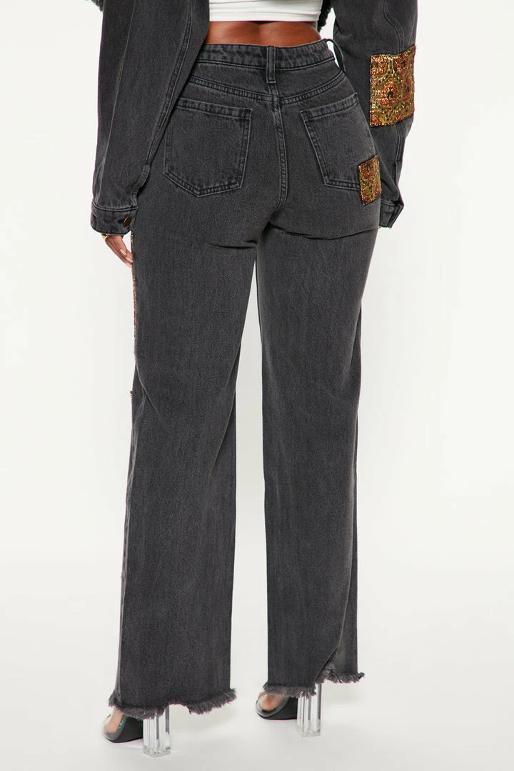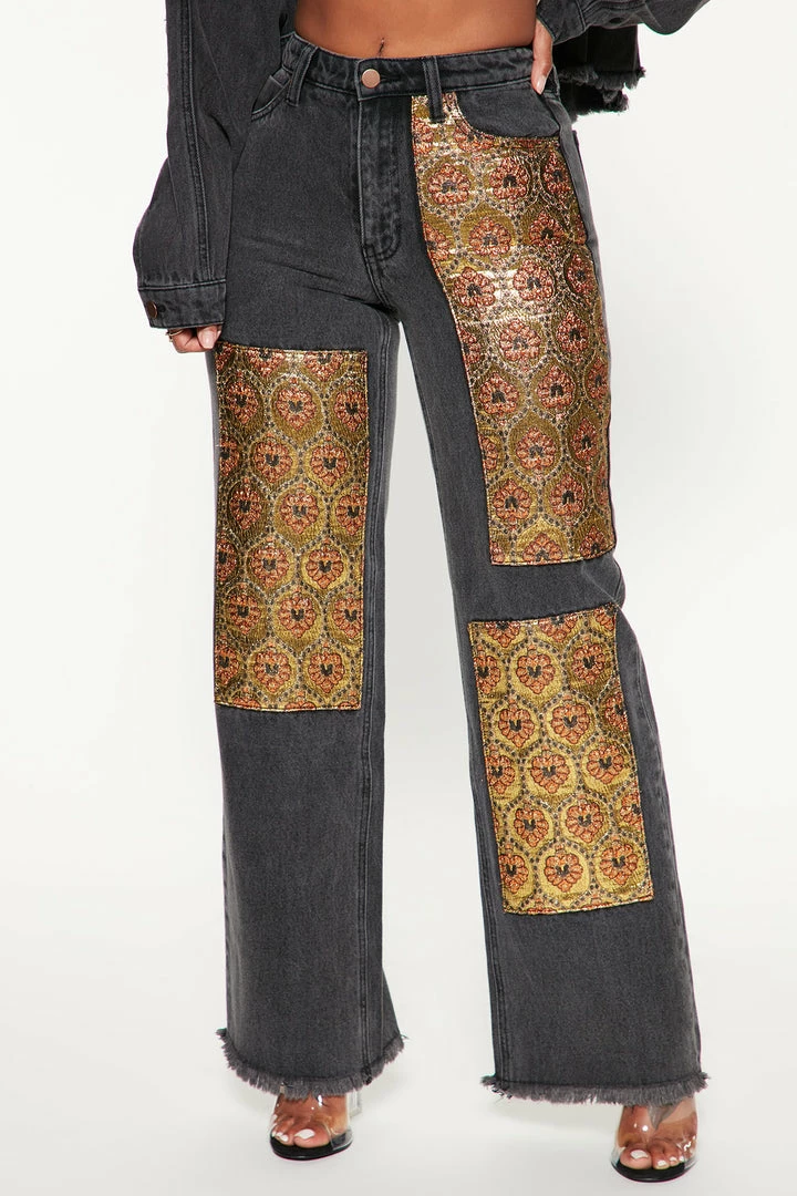 Hot Sale ๐งจ Fashion Nova Floral Brocade Wide Leg ๐ Jeans – Black Baggy ๐ Jeans ๐