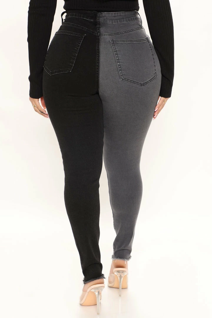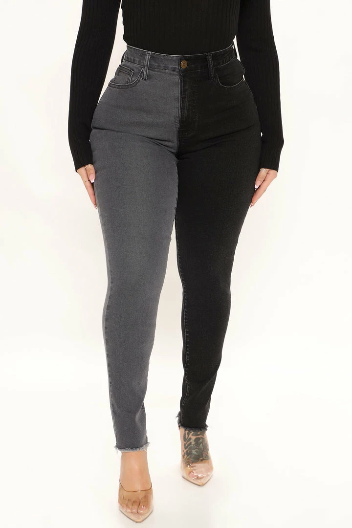 New 🛒 Fashion Nova Half And Half Contrast High Rise Skinny 👖 Jeans – Black/Grey 🔥