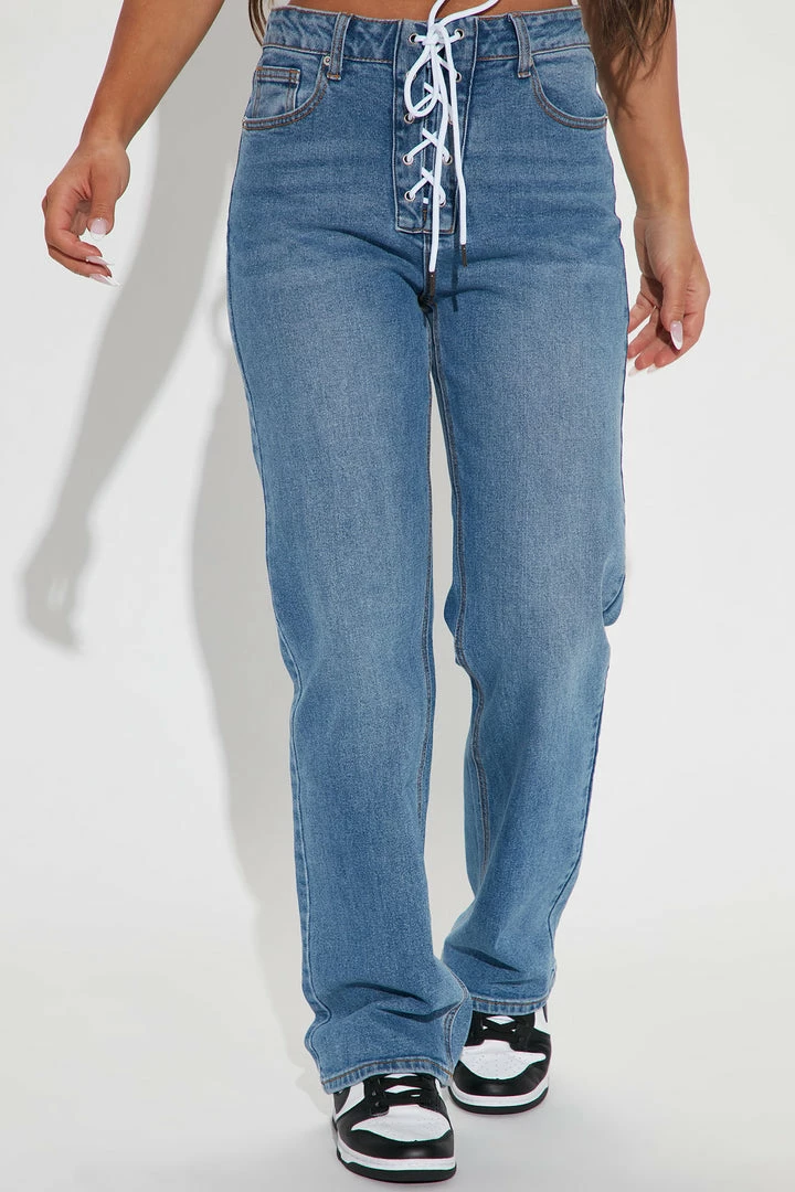 Brand new ๐ Fashion Nova Hot Shot Lace-Up High Rise Straight Leg ๐ Jeans – Medium Wash ๐