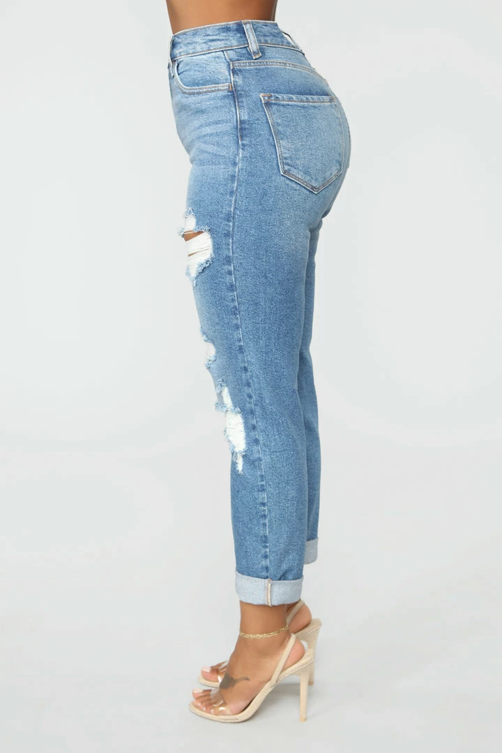 Itβs all jean-etics. Made from a Cotton-Lycra blend and cut into a high-rise design, our I Got It From My Mama Jeans in Medium will give you the on-trend Mom Jean look with an added stretch for comfort and mobility.