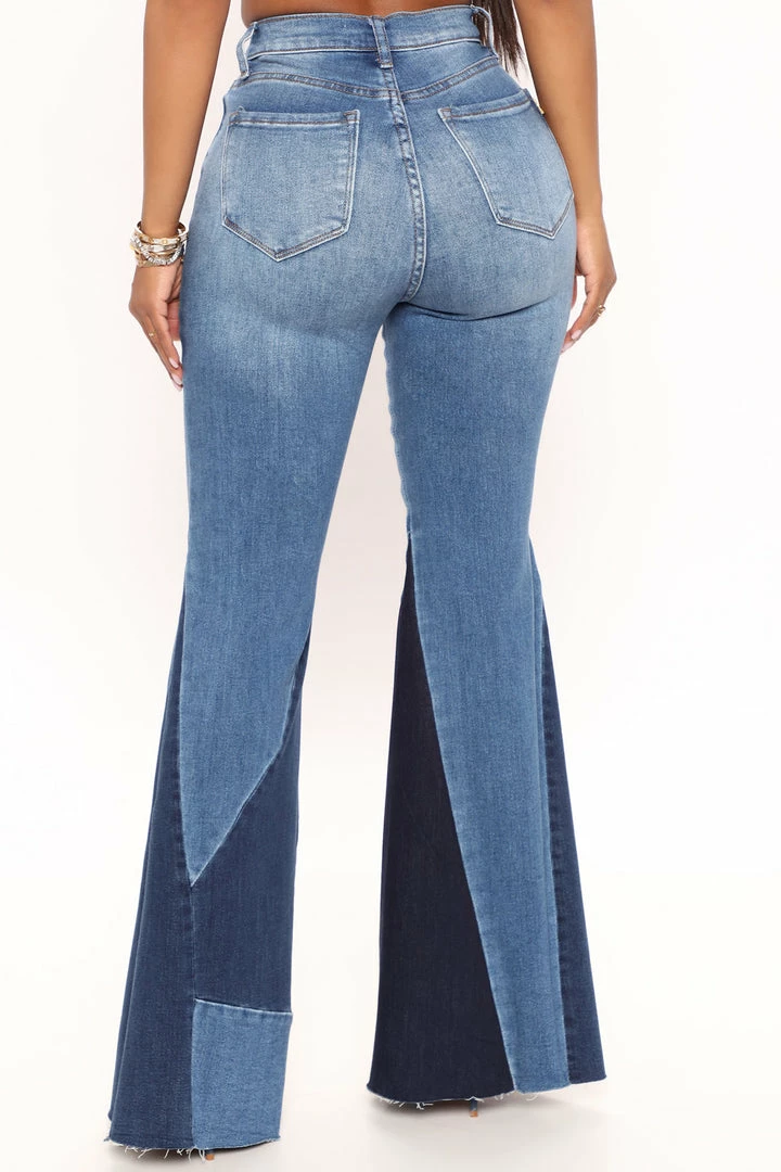 Best deal 😀 Fashion Nova Let’s Toast Two Tone Extreme Flare 👖 Jeans – Medium Blue Wash 🔥