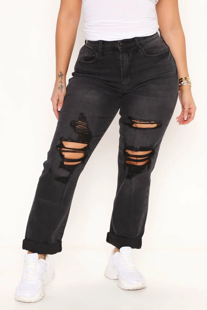 Cheapest 👏 Fashion Nova My Best Boyfriend Ripped 👖 Jeans – Black Boyfriend 👖 Jeans ❤️