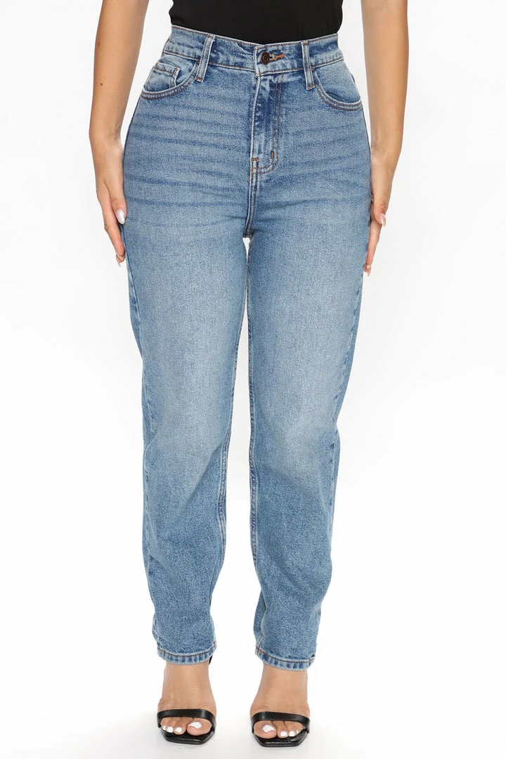 Itβs all jean-etics. Made from a Cotton-Lycra blend and cut into a high-rise design, our I Got It From My Mama Jeans in Medium will give you the on-trend Mom Jean look with an added stretch for comfort and mobility.