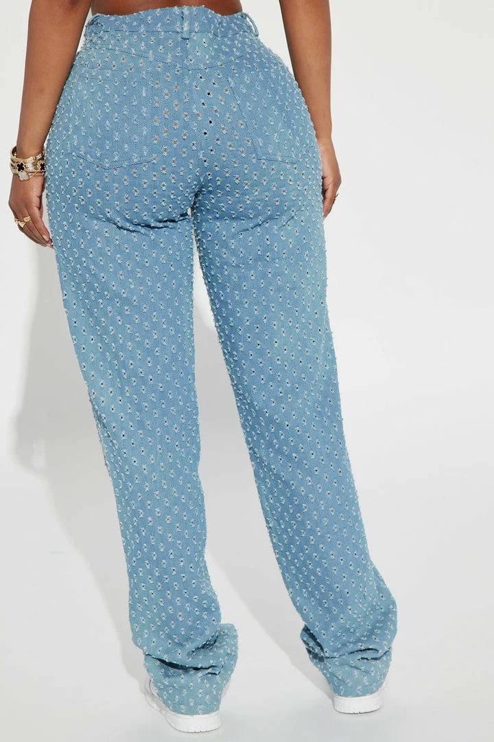 Hot Sale ๐ Fashion Nova Real Groove Punctured Straight Leg ๐ Jeans – Medium Blue Wash ๐