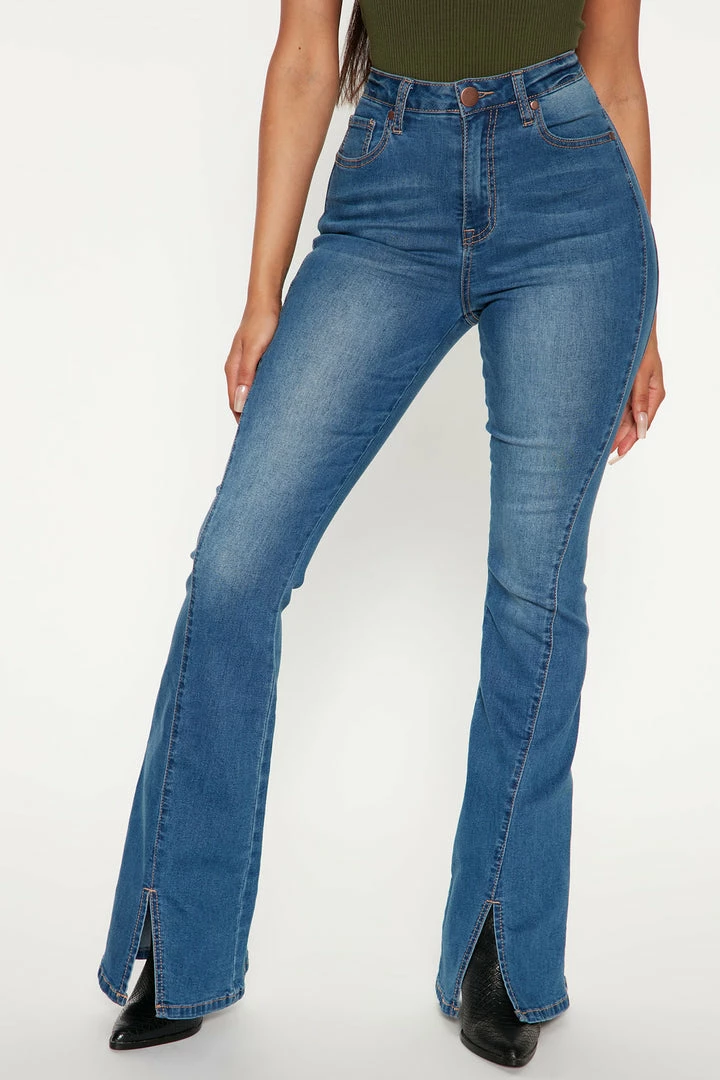 Best reviews of โ Fashion Nova Rising Star High Rise Slit Flare ๐ Jeans – Medium Wash ๐คฉ