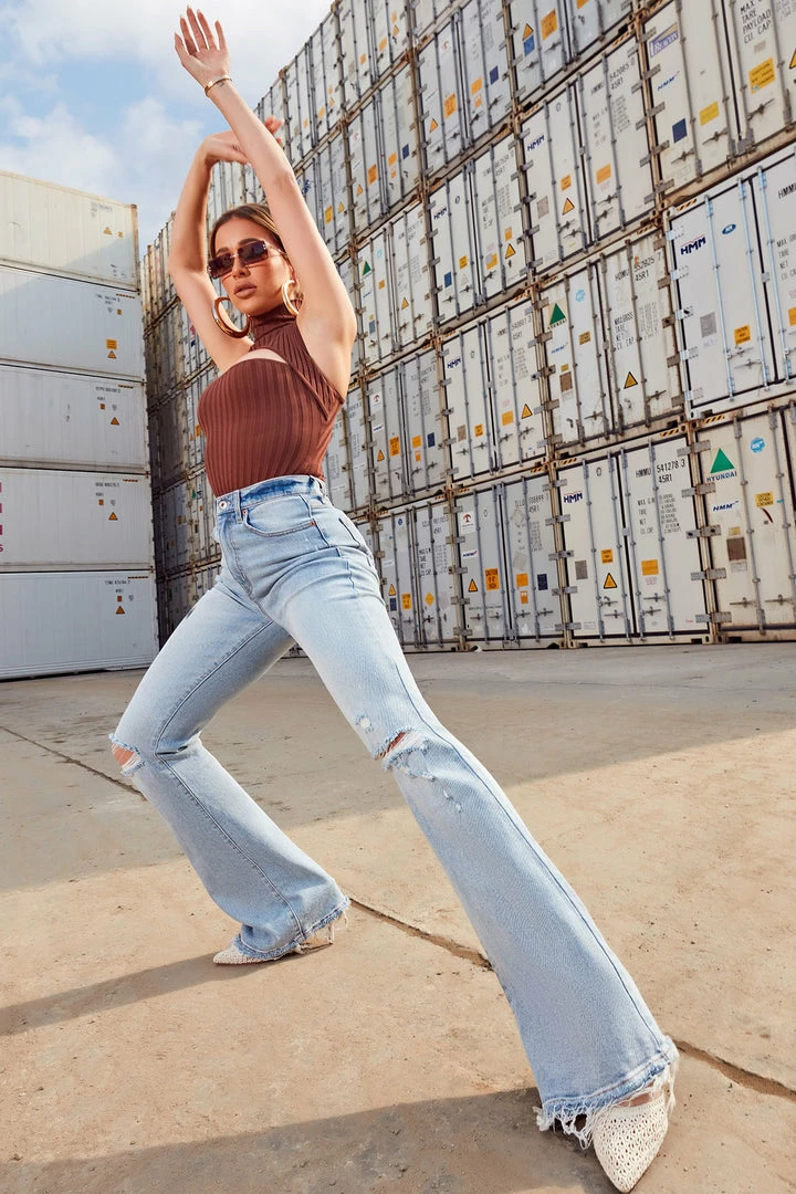 SKU: fashion-nova-6535902560380 Category: Flare Jeans Tags: Atticket, Detail:Ripped, Julybogo, Length:Regular, Mixit, Stretch:Low Stretch, Waist:High Rise, Wash:Light Wash