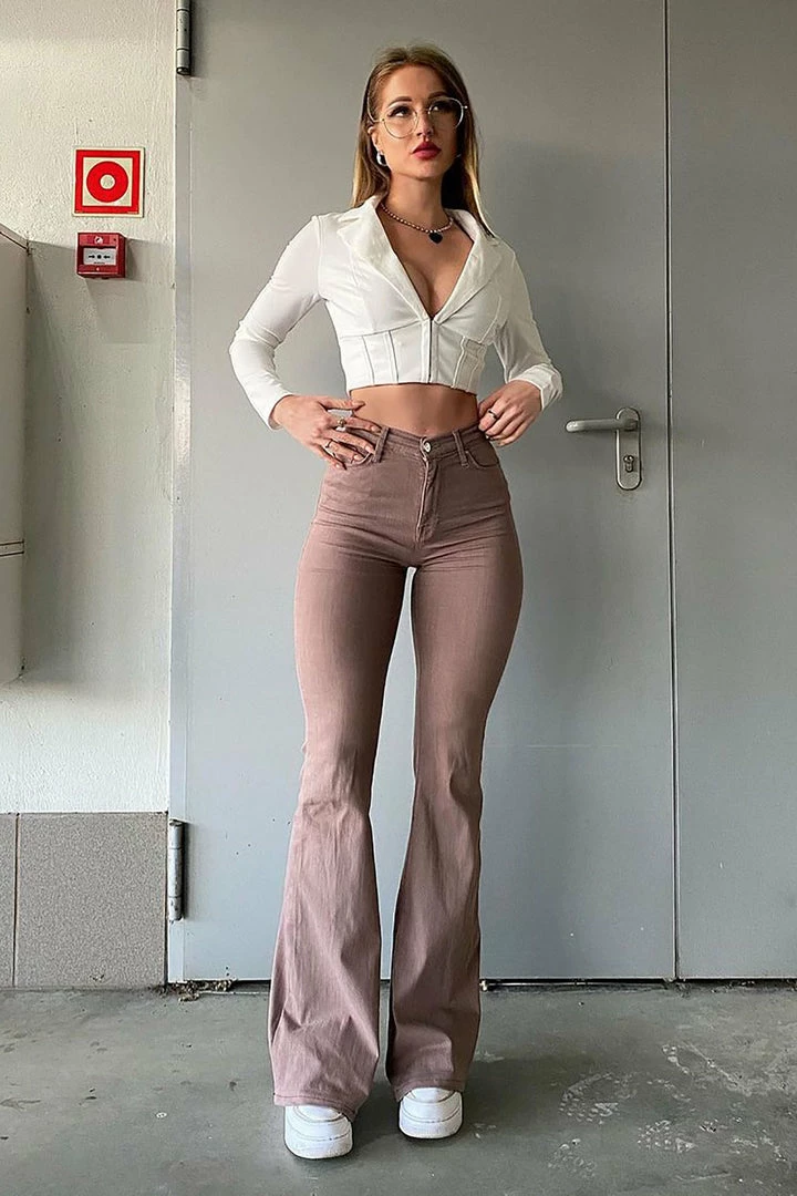 Budget 😀 Fashion Nova Santorini Super Stretch Flare 👖 Jeans – Mocha 🌟