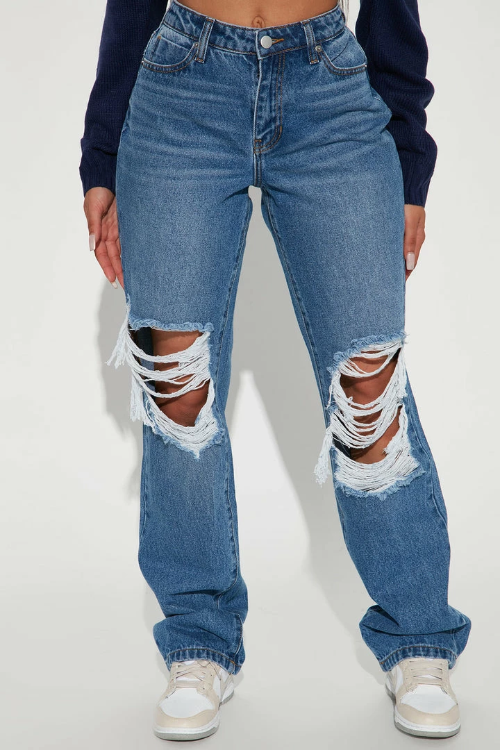 - High Rise Straight Leg Jeans