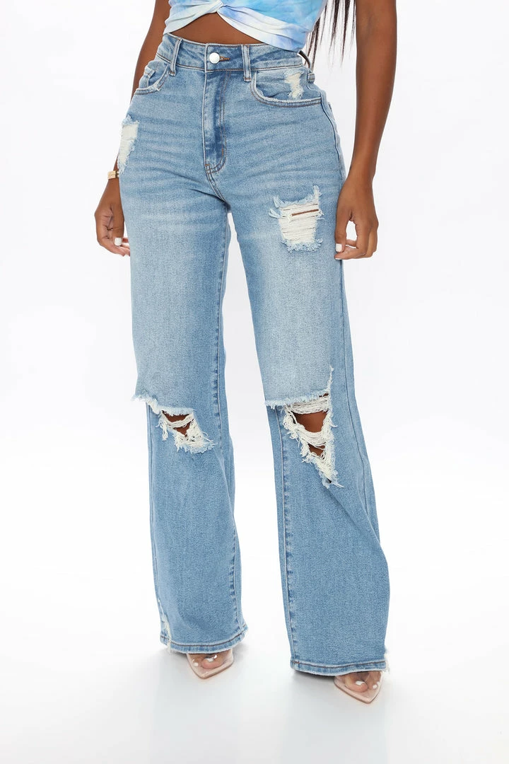 Best Sale โญ Fashion Nova Searched Far And Wide Leg ๐ Jeans – Medium Blue Wash Baggy ๐ Jeans ๐