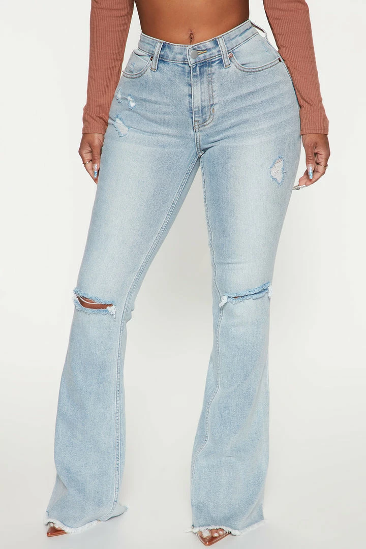 SKU: fashion-nova-6537113403516 Category: Flare Jeans Tags: ColorFam-Blue, Detail:Ripped, Jeans, Plusbootflare, REGPRICE, Waist:High Rise, Wash:Light Wash, WOMENS