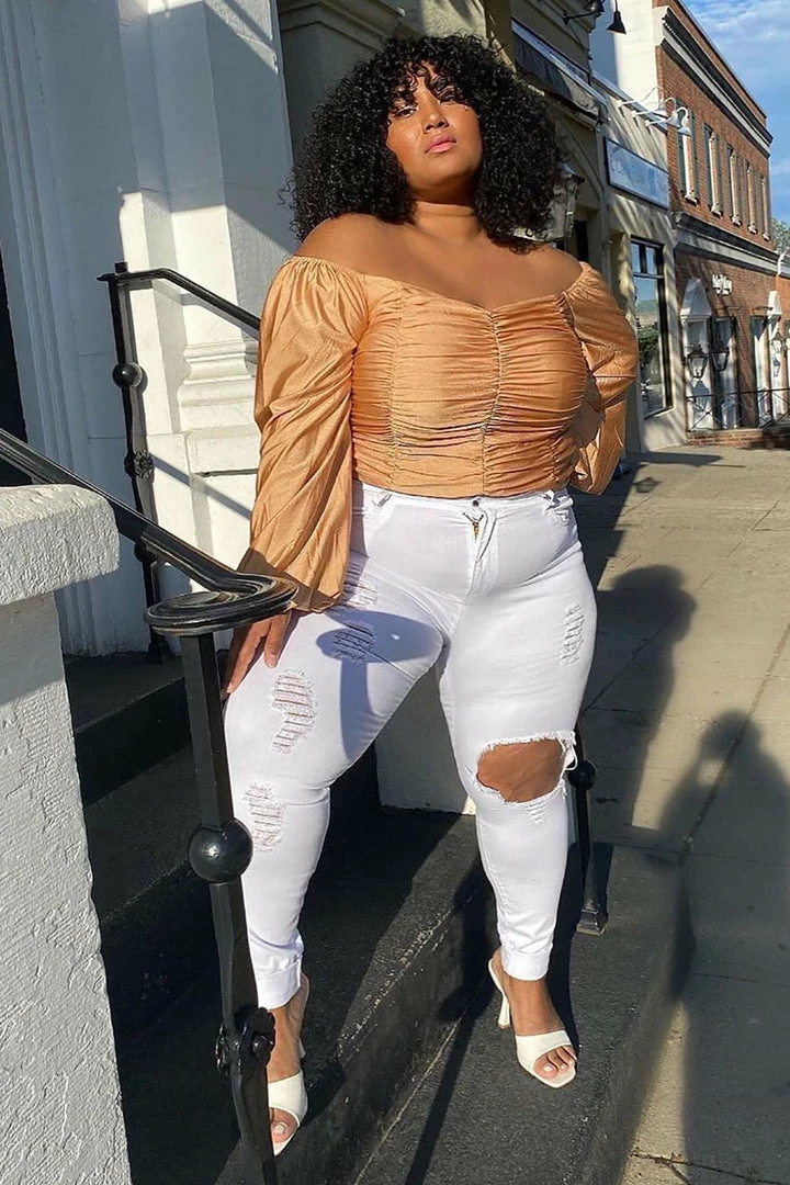 You look torn– just get every color! Our Glistening Jeans are destroyed in all the right places. Featuring a mid rise, 5-pocket design, these jeans will flatter your every move. Also available in white, black, olive, dark wash, and medium wash. Now available in Curve.