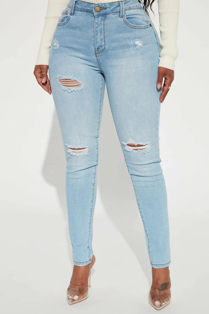 Wholesale ๐ฅฐ Fashion Nova Tall Catty Distressed Skinny ๐ Jeans – Light Blue Wash ๐
