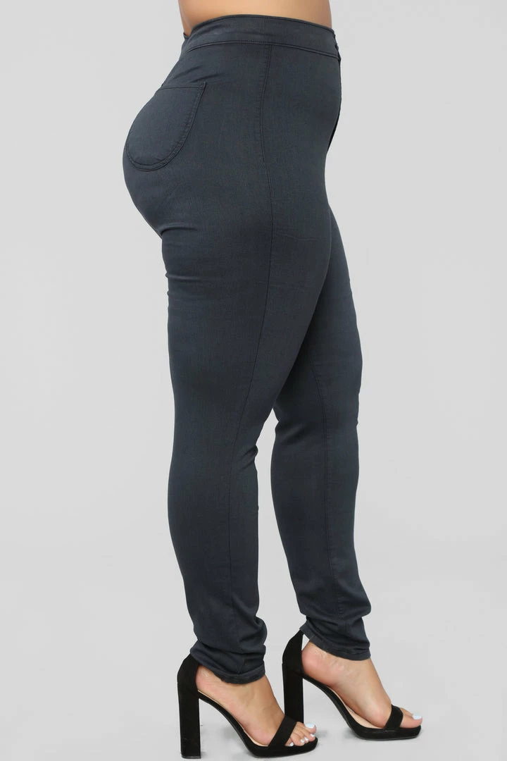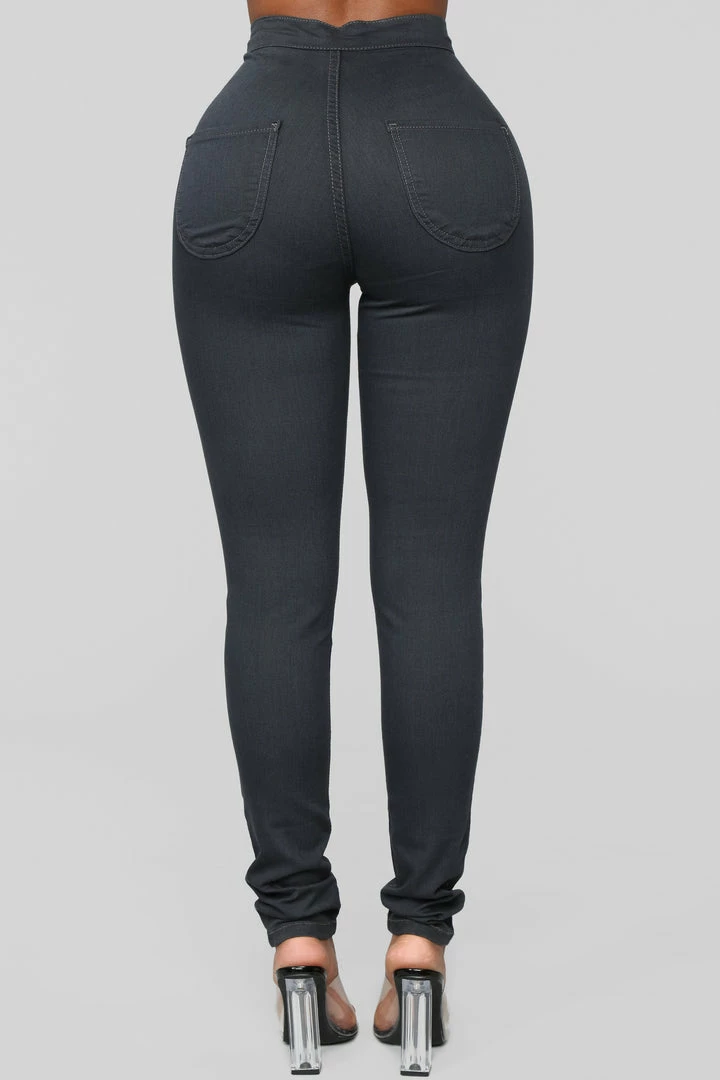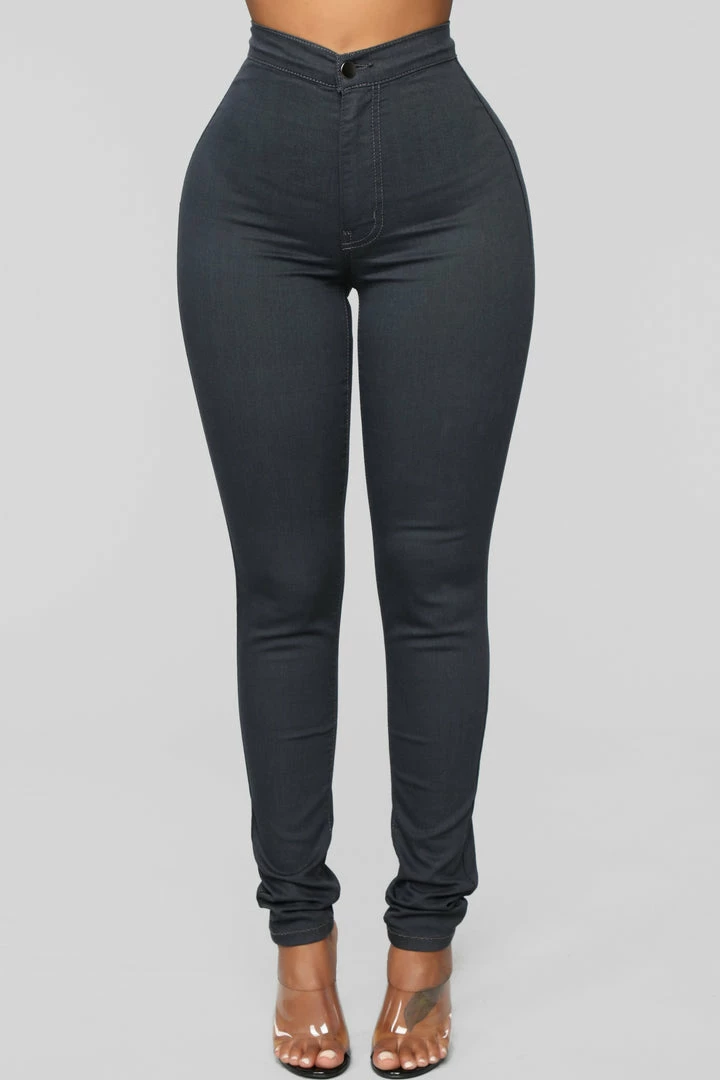 Consider your waist instantly snatched. Our Super High Waist Denim Skinnies will hug your curves tight while still allowing you to move freely. Featuring 2 round back pockets and a cotton-poly-spandex blend, you’ll want these jeans in every color.