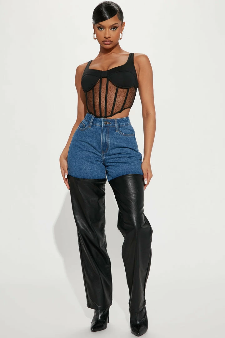 Deals π Fashion Nova Something Special PU Mix Straight Leg Jean – Medium Blue Wash β