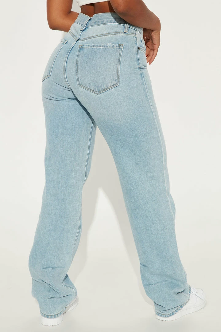 Coupon ❤️ Fashion Nova Tacked Hem Straight Leg Jean – Light Blue Wash Straight Leg 👖 Jeans ❤️