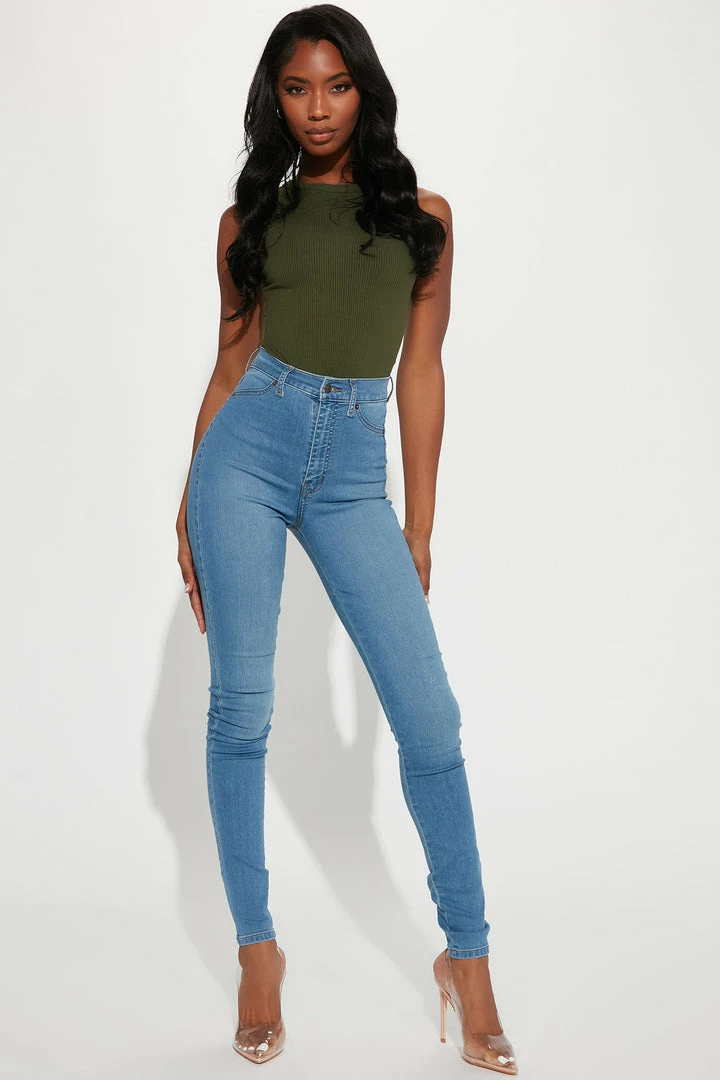 Promo โค๏ธ Fashion Nova Cross Me Once Stretch Skinny ๐ Jeans – Medium Blue Wash ๐