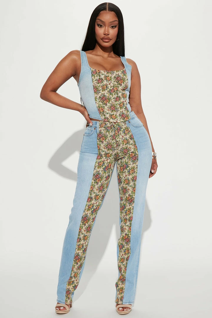 - Pair With “Tapestry Mixed Denim Corset Top”