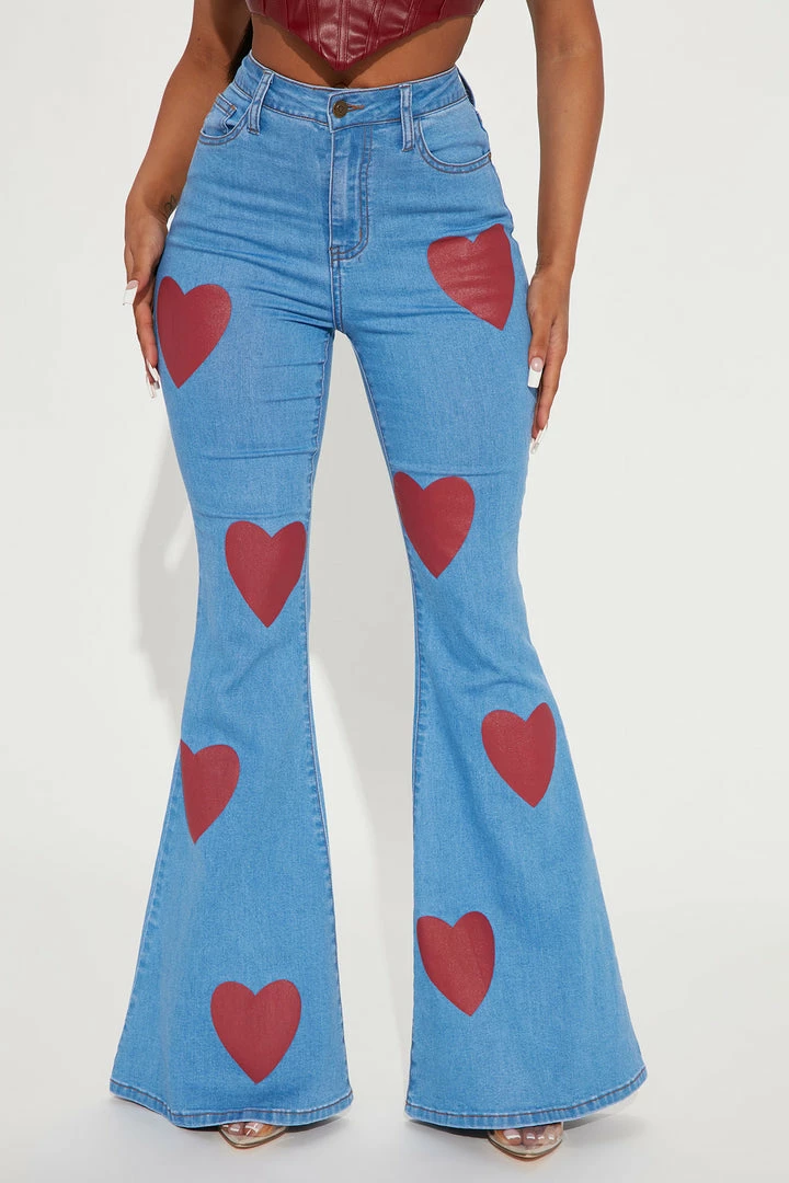 Best Sale 😀 Fashion Nova Two Hearts High Waisted Flare 👖 Jeans – Medium Blue Wash 🛒