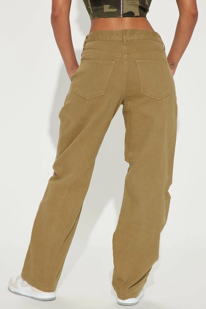 Best Sale ๐งจ Fashion Nova User Friendly Cut Out Non Stretch Straight Leg ๐ Jeans – Olive ๐