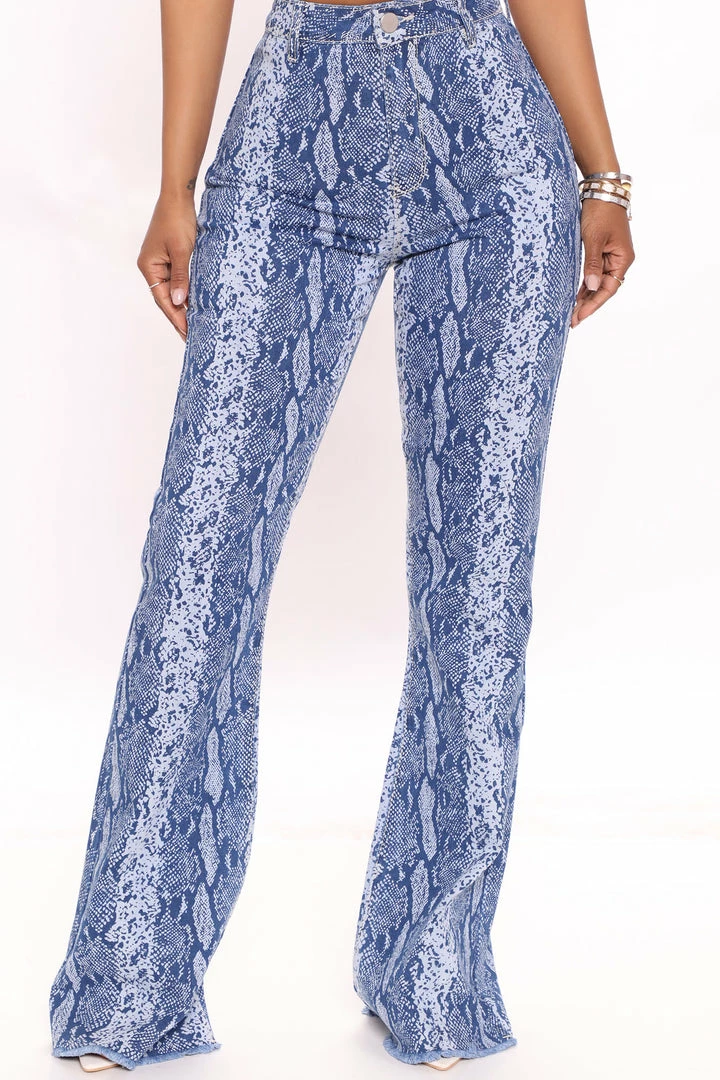 Best deal โค๏ธ Fashion Nova Valentina High Rise Snake Flare ๐ Jeans – Medium Blue Wash โจ