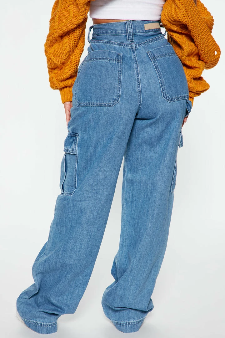 Budget βοΈ Fashion Nova Venice High Rise Baggy Cargo Jean – Medium Blue Wash π