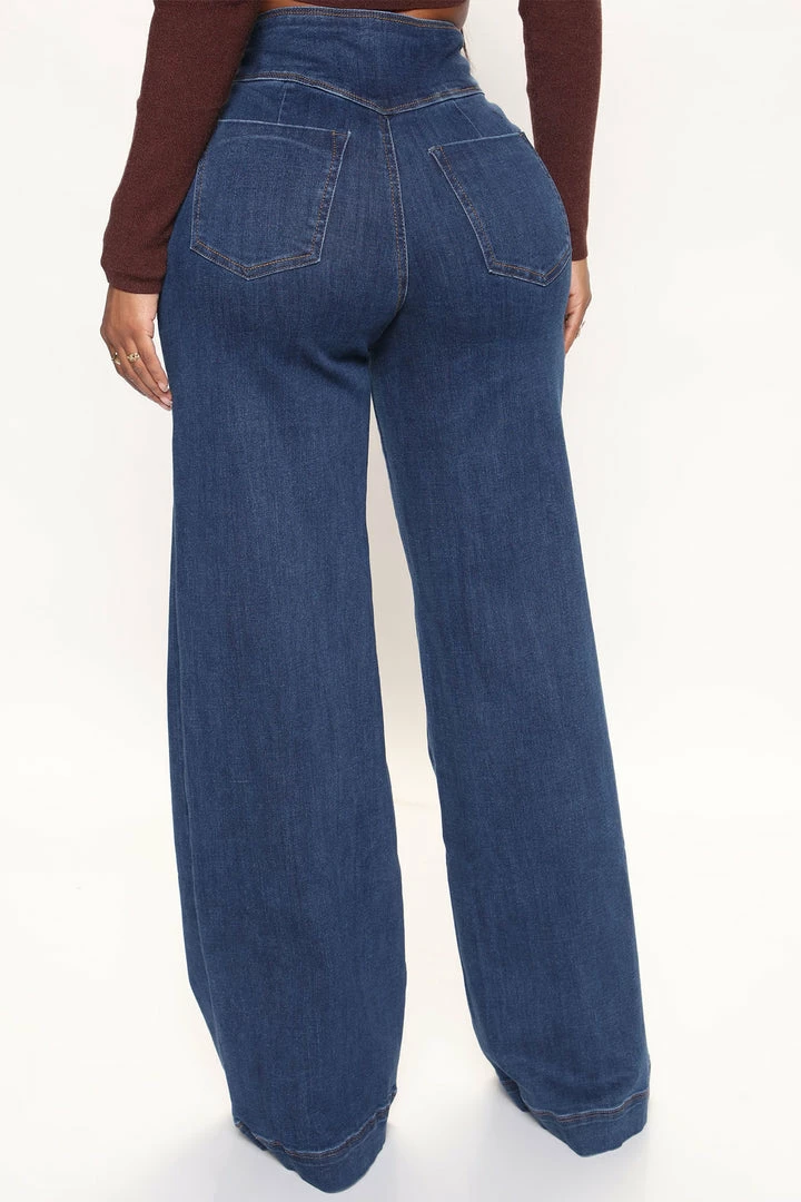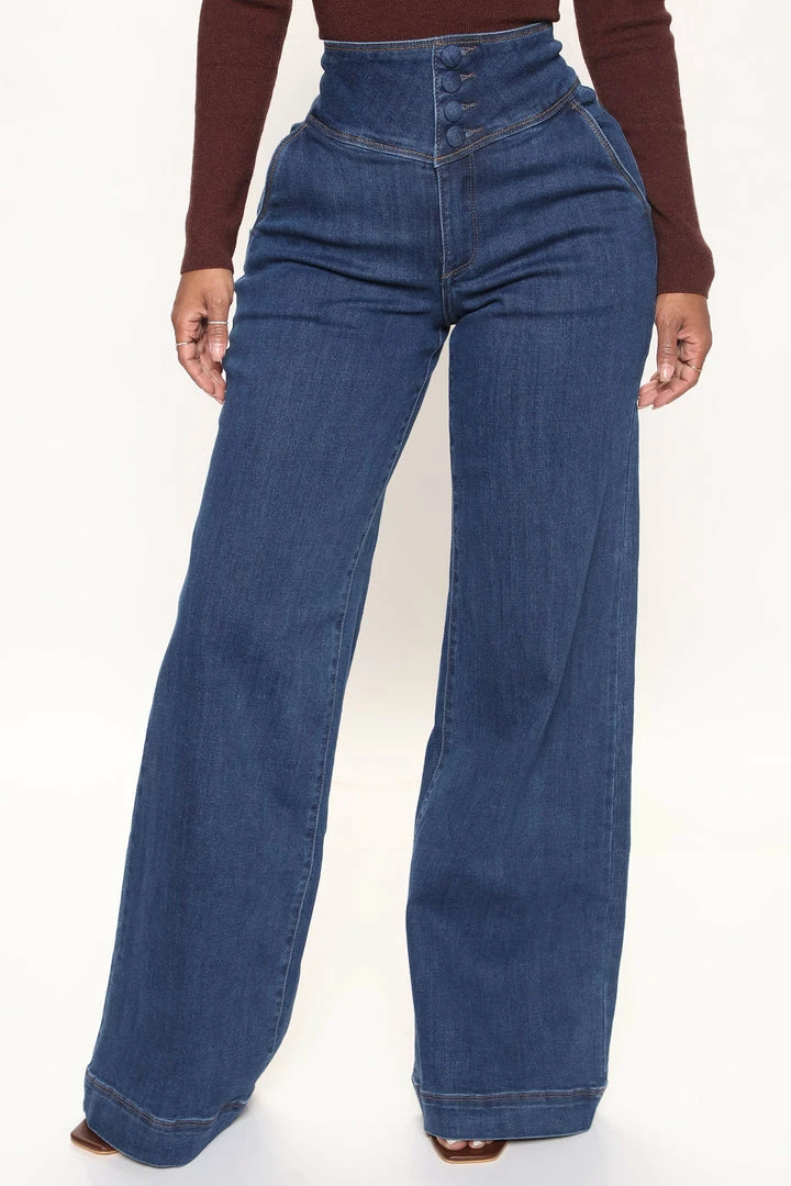 SKU: fashion-nova-6536729067644 Category: Wide Leg Jeans Tags: Basic, Color:Dark Denim, Junebogo, Mixit, Sale, Sale40, Stretch:Medium Stretch, Waist:High Rise